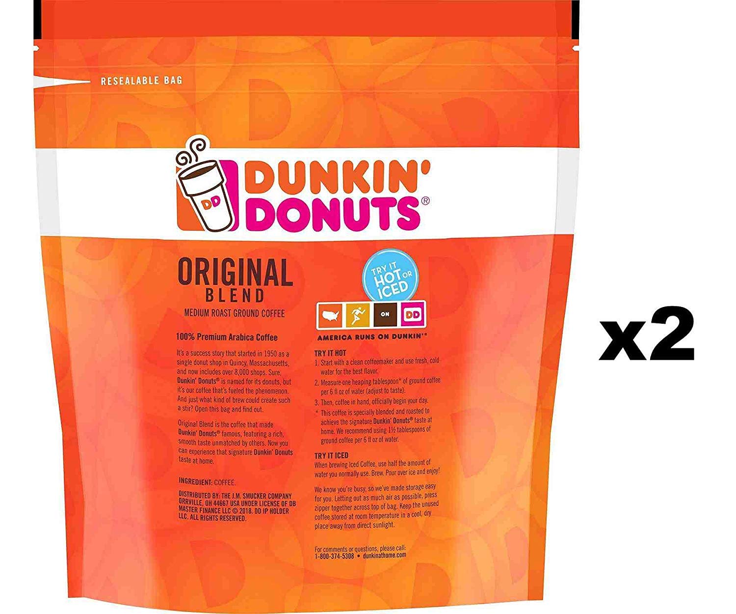 Dunkin Donuts Original Blend Medium Roast Ground Coffee 100 Premium Arabica Coffee 40 Oz Pack Of 2 Walmart Com